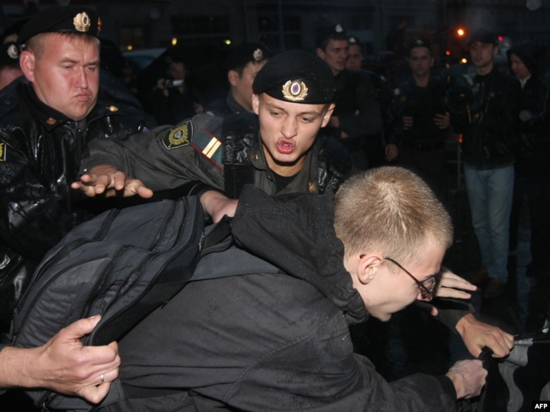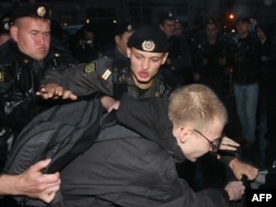 Полиция Москванын мэри Ю. Лужковдун кызматтан кетишин уруксатсыз майрамдаган "Солидарность" кыймылынын мүчөлөрүн камакка алууда. 27-сентябрь2010