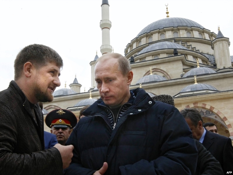 Премьер-министр В. Путин(оңдо) Чеченстандын көсөмү Р. Кадыров менен. Грозный. 16-октябрь 2008