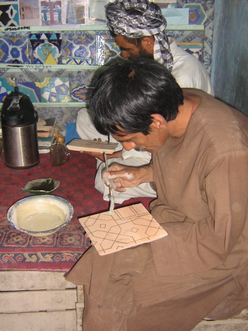Көк Мечиттин башкы устасы Мухаммед Шах иш үстүндө.