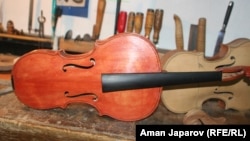 - Колуңузда скрипкага окшош аспаптын үлгүсү жасалып жатыптыр. Бул эмне деген аспап?