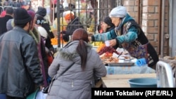 Жамила айым борбордогу Ош базарында азык-түлүк сатат. Анын айтымында, акыркы аптада күнүмдүккө керектелчү азык-түлүктүн баасынын кескин өскөнү байкалды: