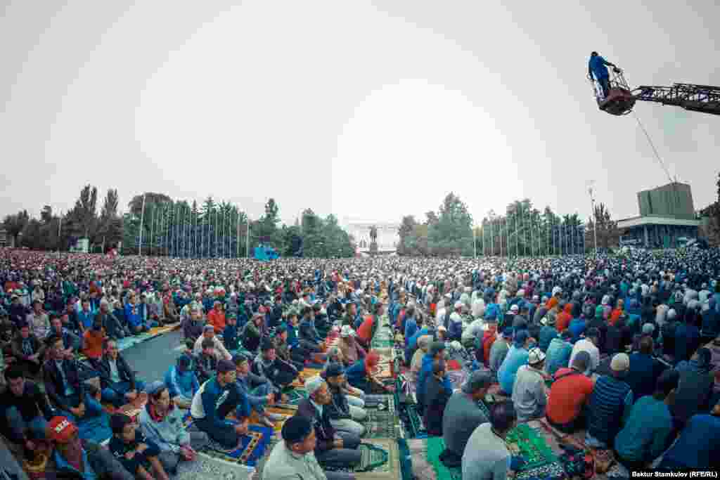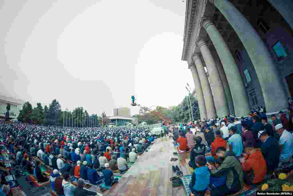 Майрамдык айт намазы Бишкектеги Эски аянтта өттү. Ага шаардын тургундары жана коноктору катышты.