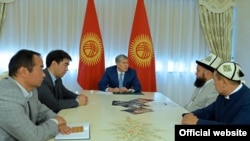 Президенттин маалымат кызматы тараткан сүрөттө жолугушууда коомчулукта кызуу талкууланган өткөн жумада Ош шаарындагы чүмкөнгөн кыздардын жыйынынан сүрөттөрдү көрүүгө болот. Буга караганда сөз жалпы диний кырдаал жөнүндө болгондой.