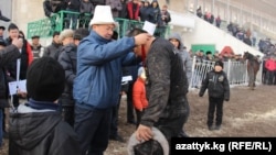 Баш байге үчүн таймашууга күбө болуп турган федерация президенти, Жогорку Кеңештин депутаты Канатбек Исаевдин айтымында, жааган кар менен баткакка чыланып, салмактуу болуп калган улак менен ойноо жигиттер үчүн кыйын болгону менен алардын чеберчилиги жогорулап, тажрыйбасы артат.