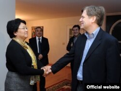 Президент Роза Отунбаева менен АКШ президентинин атайын жардамчысы Майкл Макфоллдун 6-марттагы жолугушуусунда,  Макфолл