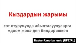 Жактоочу Наргиза Абдумуминованын айтуусунда, көп учурда уурдалган кыздар сот отурумунда да көрсөтмөсүн өзгөртүп, айыпталуучуларга карата «доом жок» деген көрсөтмө берип коюшат.