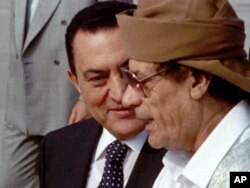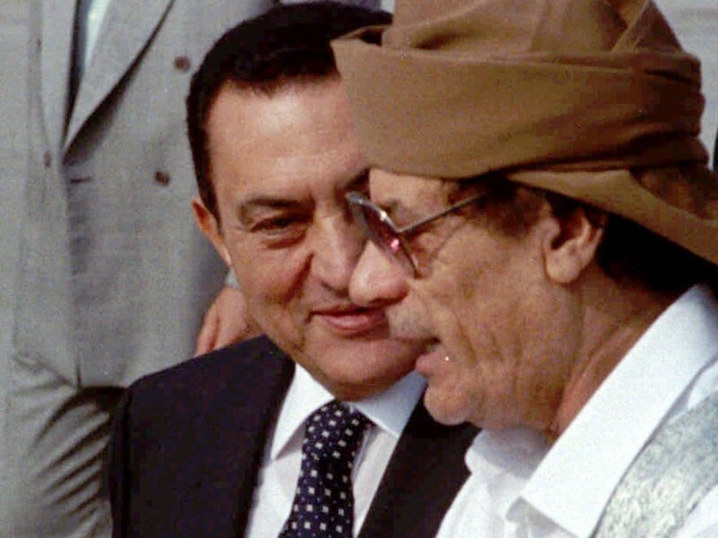 Президент Хосни Мубарак(солдо) жана Муаммар Каддафи. Каир. 22-июнь 1996