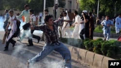 Исламабадда "Бейкүнөө мусулмандар" тасмасына каршы нааразылык акциянын катышуучулары менен полиция кагылышты, Пакистан, 21-сентябрь, 2012-жыл
